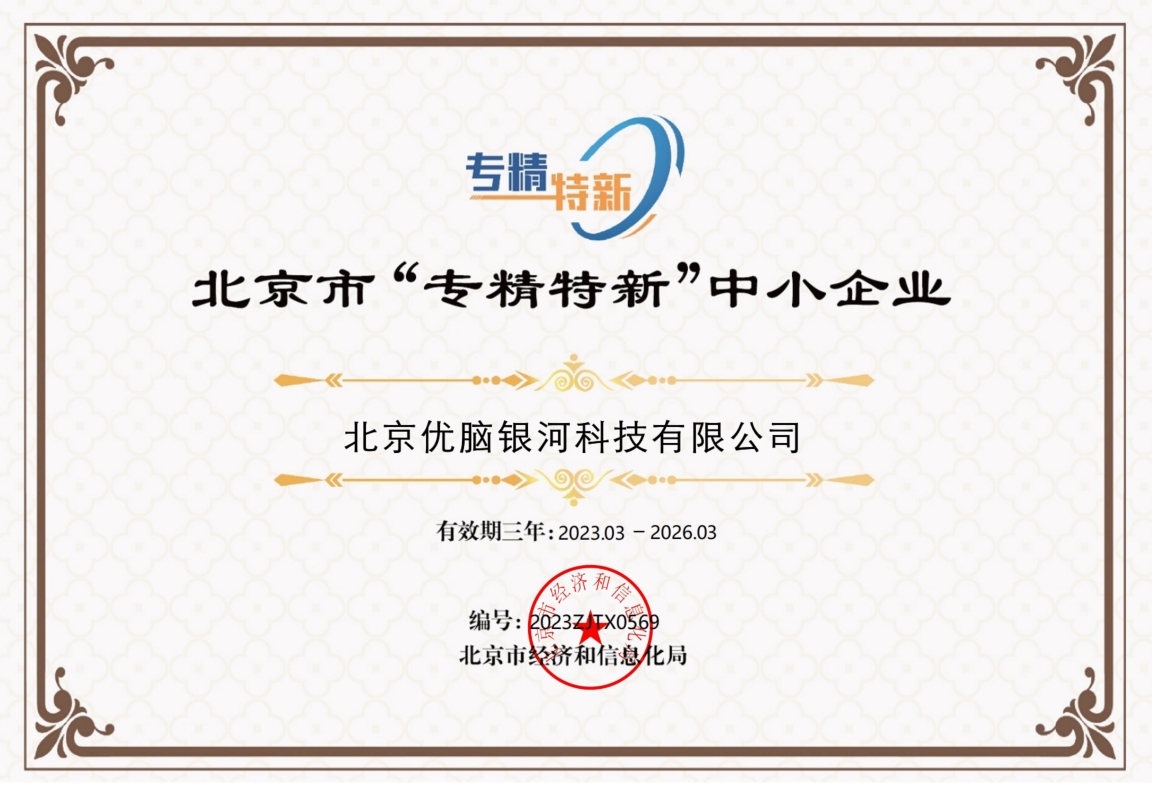 日前,优脑银河获评北京市“专精特新”中小企业,再一次被高度认可!