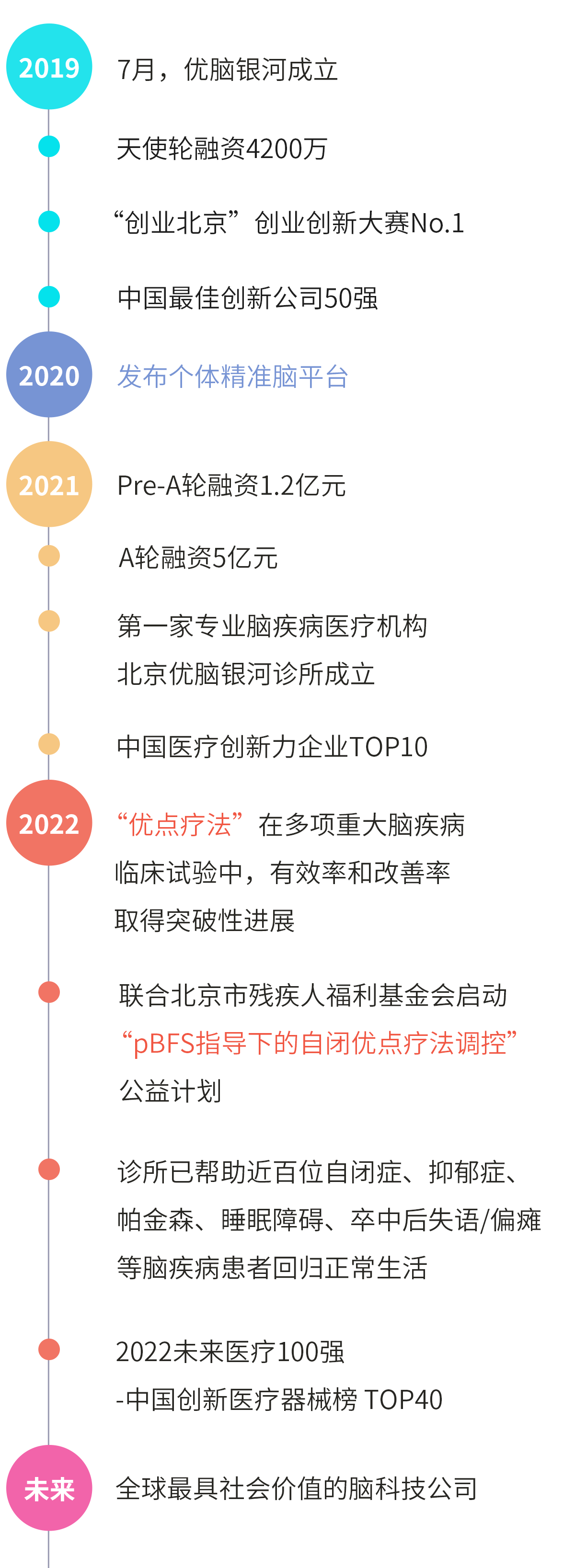 2019年7月11日,优脑银河点亮了“突破脑认知 攻克脑疾病”的梦想,为成为“全球最具社会价值的脑科技公司”而努力,以期帮助解决脑疾病患者和家庭的痛苦及社会负担,护航“健康中国 2030”, 以独有的“科研+临床+产品”优势,引领万亿级脑产业发展。