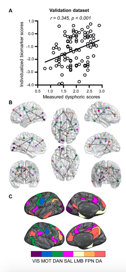 Zhao, Y., Dahmani, L., Li, M., Hu, Y., Ren, J., Lui, S., ... & Liu, H. (2022). Individualized functional connectome identified replicable biomarkers for dysphoric symptoms in first-episode medication-naïve patients with major depressive disorder. Biological Psychiatry: Cognitive Neuroscience and Neuroimaging.